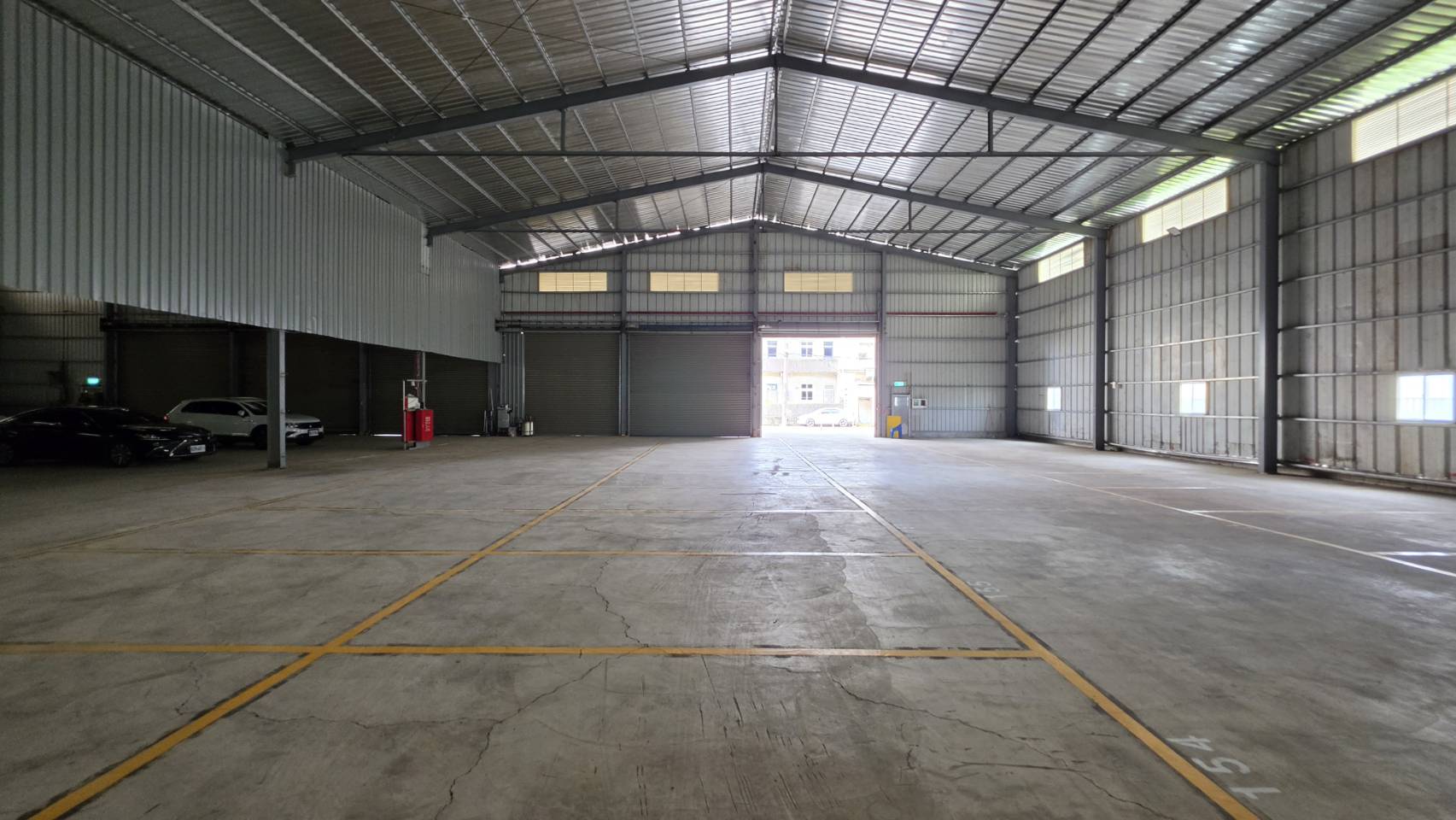 5.廠房方正挑高,地面板厚度扎實,門前有雨遮腹地好卸貨