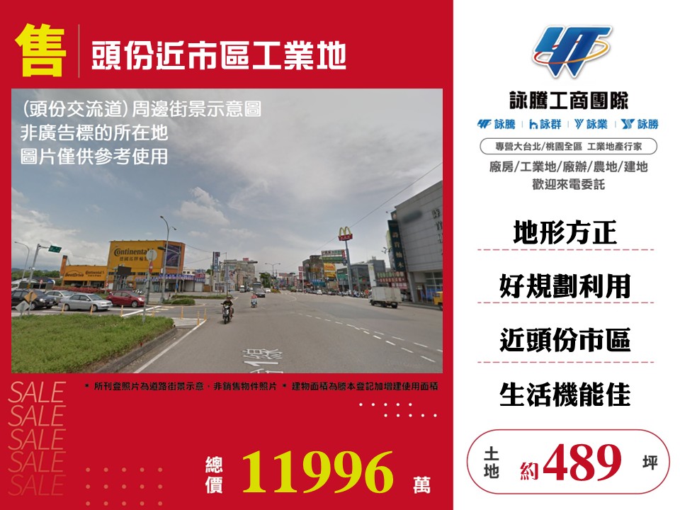 頭份大面寬臨15米路工+農/工業地廠房買賣租賃