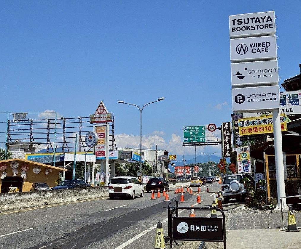 鄰近日月町複合式商場、大黑松小倆口元首館、藍色城堡、廣興紙寮、能高瀑布、