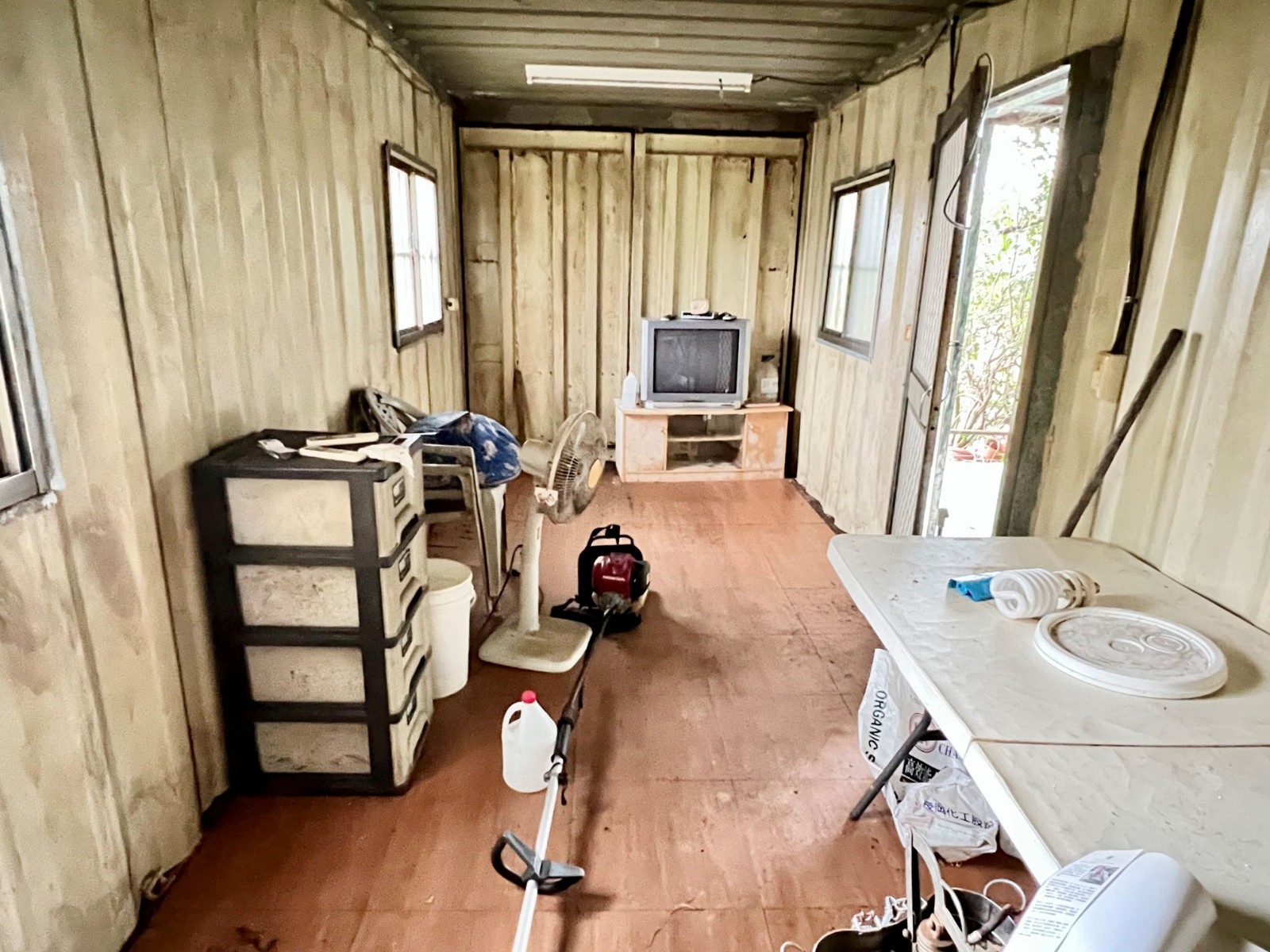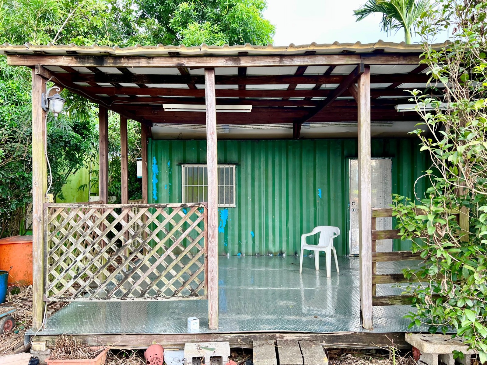 休閒貨櫃屋,有農電,水可達,地平坦,臨3米路,離大馬路150公尺、離交流道4分鐘,現有果樹,貨櫃屋2房1戶外廳1衛,度假休閒、開心農場首選~