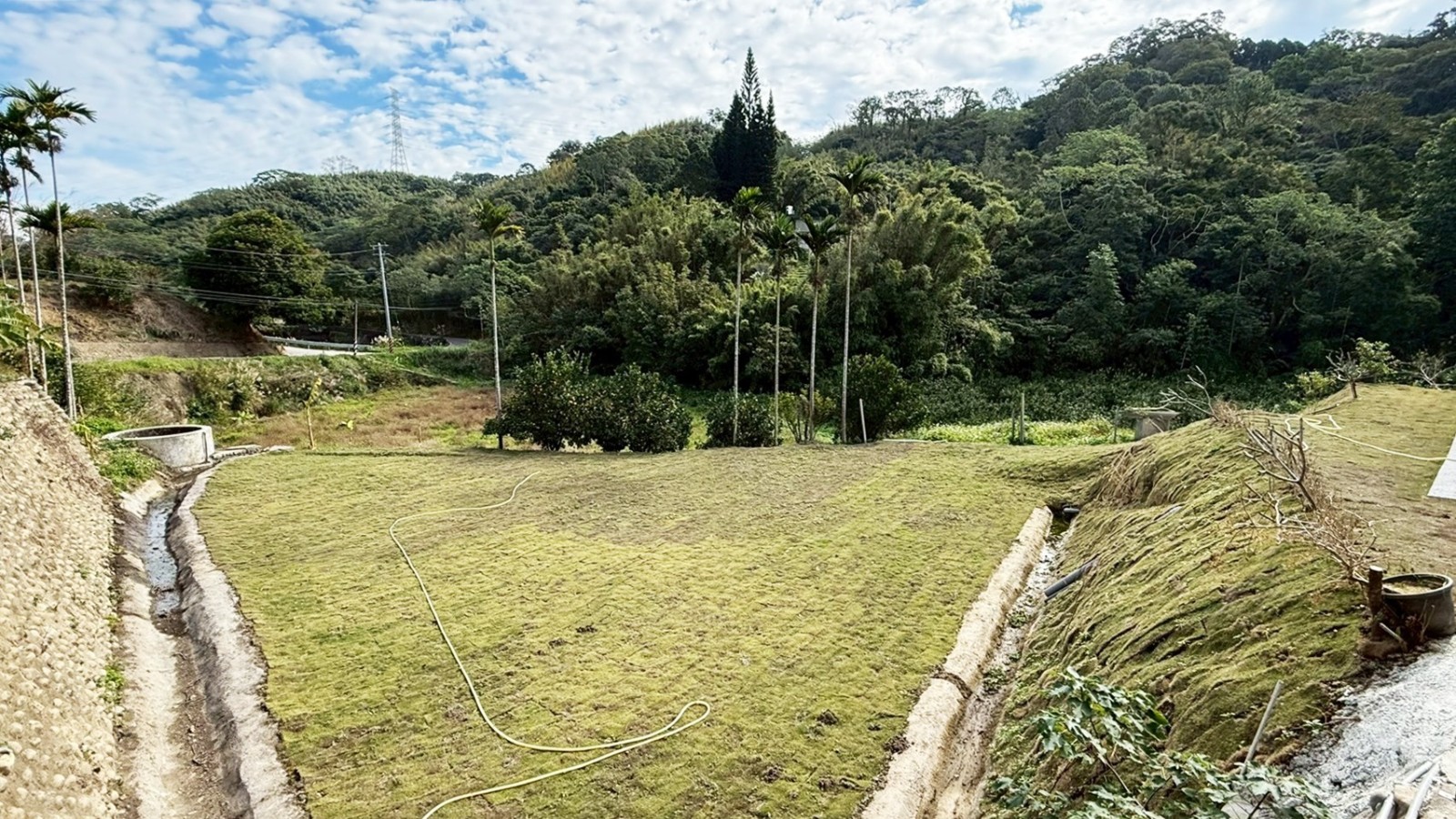 ★休閒屋門前庭院可停4台車,地主用心整理規劃,種植綠油油的草皮及一些果樹,大面積的平坦農地可種植自己喜歡的景觀花樹、果樹。