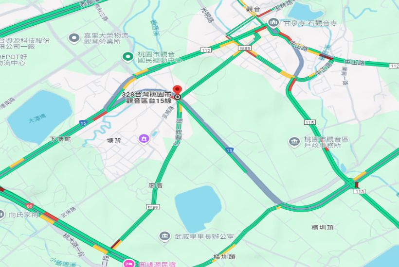 明顯目標:觀音66快速道路,正台15線西濱公路,觀音市區附近