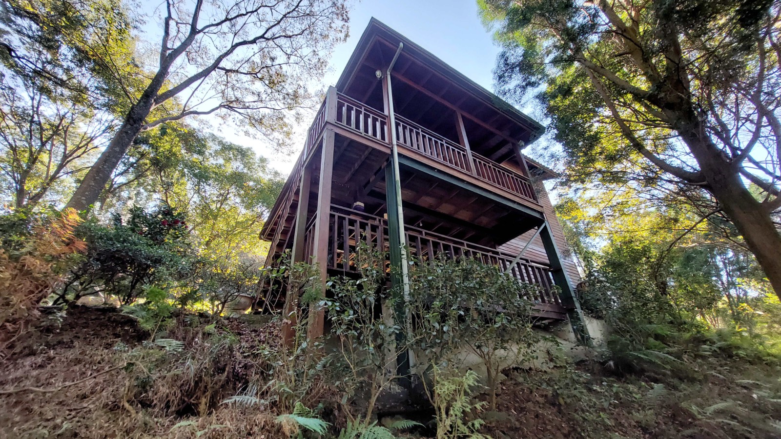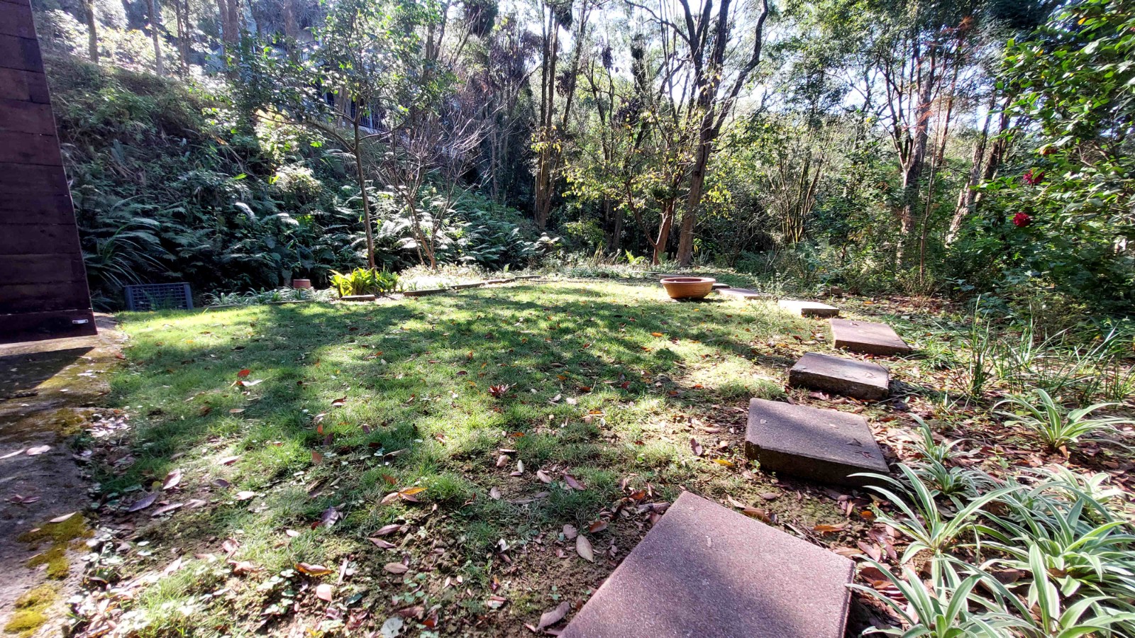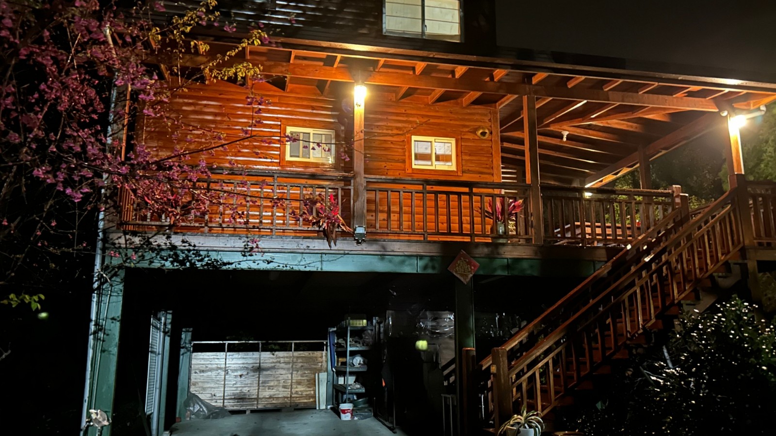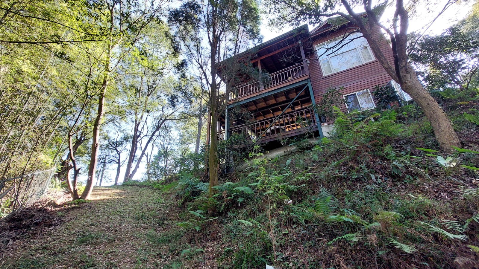 3.現況為一間鋼構木屋,採挑高設計,一樓平面作為停車區域、另設有一間獨立儲藏室,用於放置水塔、瓦斯桶及各式農用資材,收納機能完善。拾階而上,二樓為大坪數木造露台,空間寬敞開闊,無論午後品茗、賞景小憩,皆是難得的愜意享受