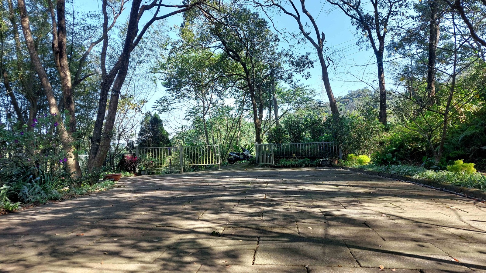2.農地設有獨立出入口,並以手動大門清楚區隔內外空間;入園後為寬敞庭院,地面全面鋪設石板,即使雨天亦不泥濘,行走、停車皆十分便利