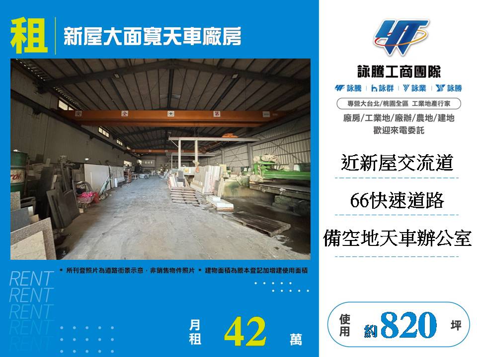 【租】新屋大面寬天車廠房FT10583