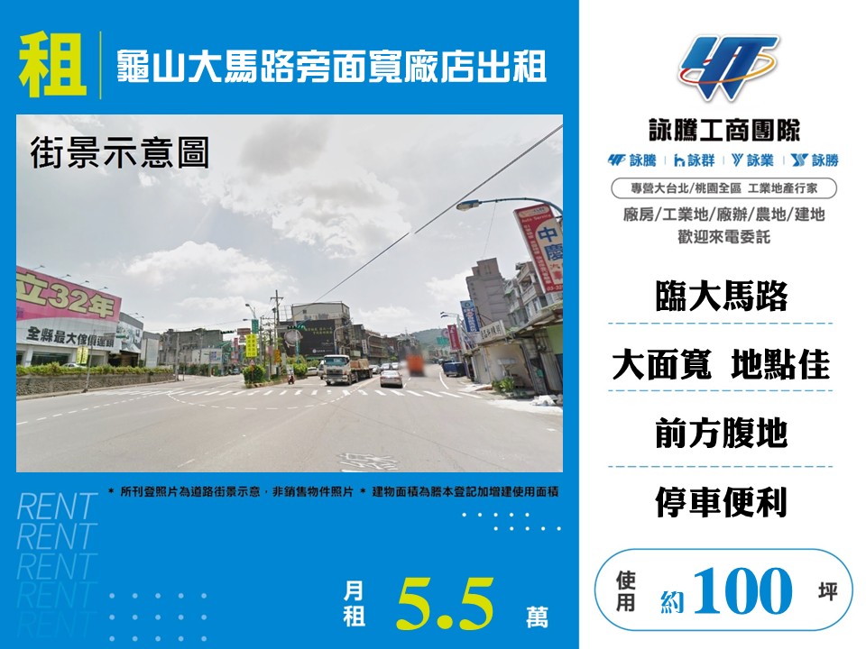 【租】★龜山大馬路旁面寬廠店★