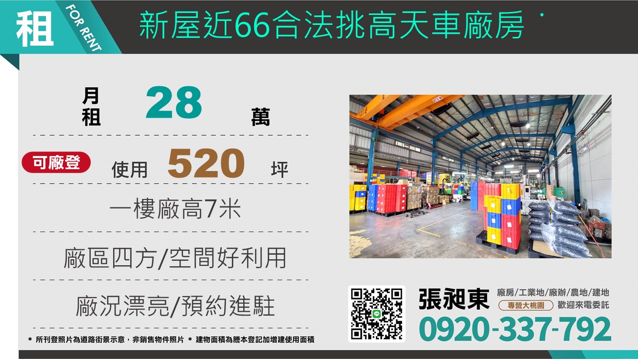 新屋66合法挑高天車廠房