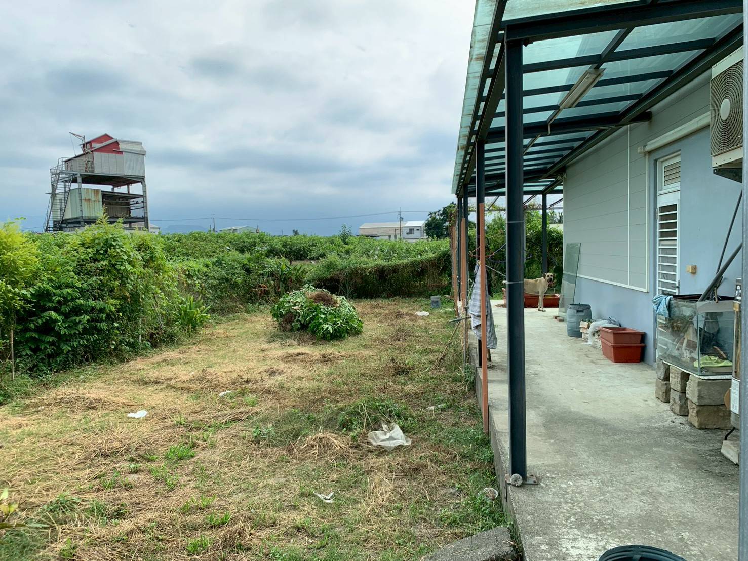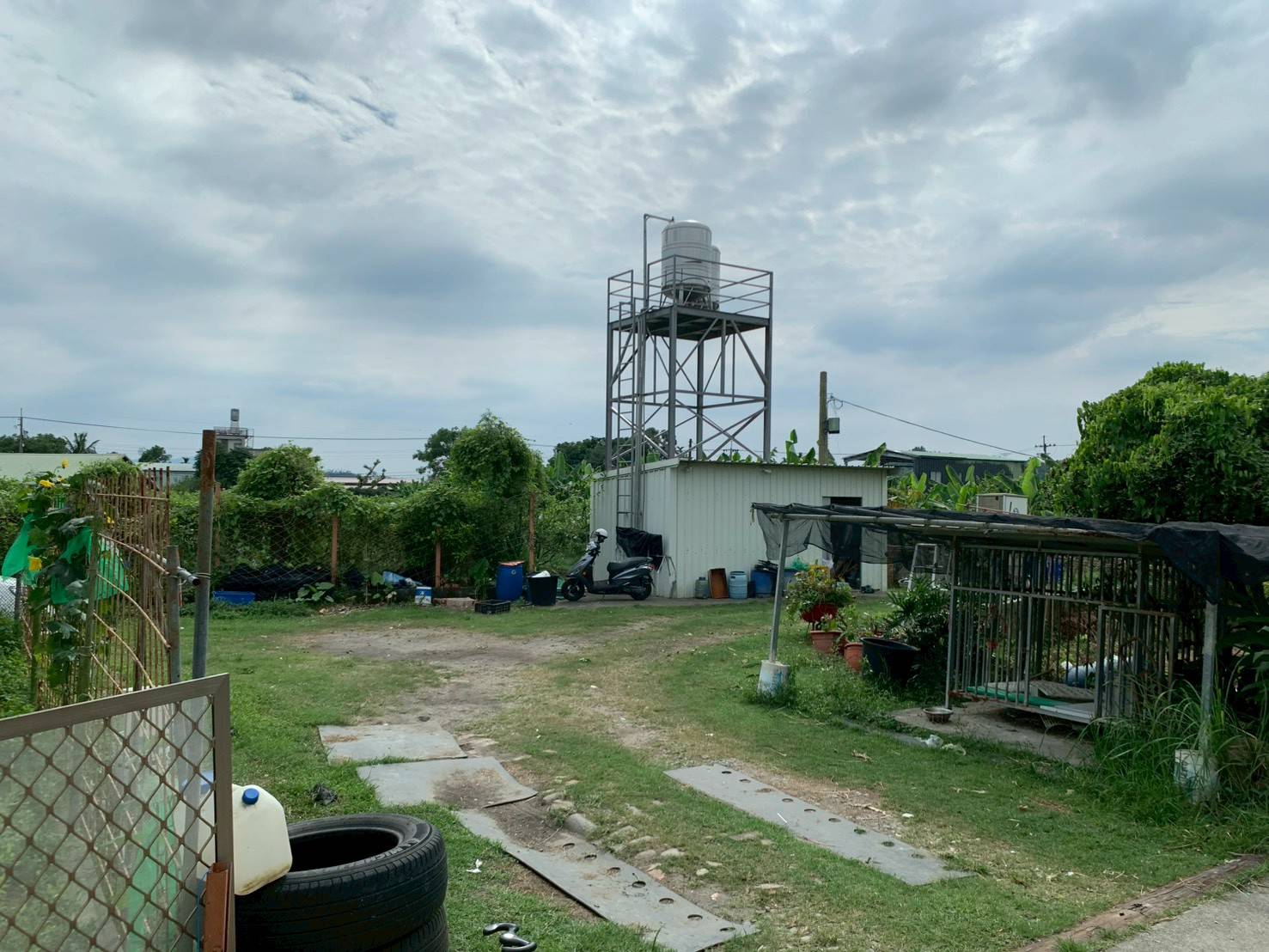 3.現有各類植裁、花果植樹木、雞舍(目前有養雞)、倉庫(內有制精油設備)、資材室(上有2座水塔)