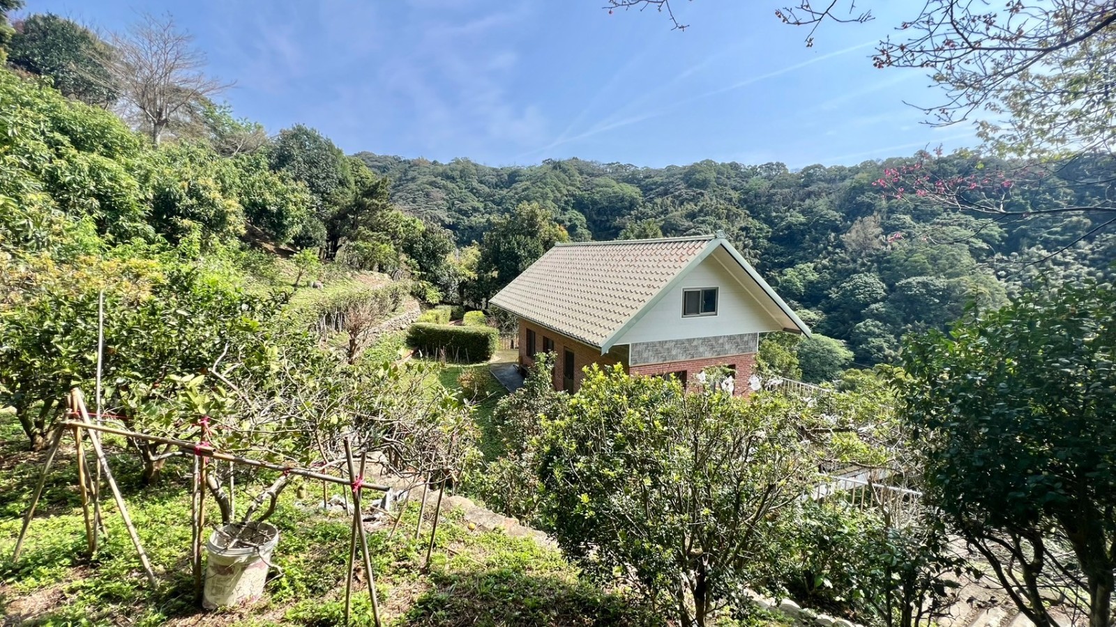 ★土地現況種植有:櫻花、龍柏、七里香、玉蘭花、桂花、茶樹、梢楠、黑松、五葉松、流蘇、咖啡、黃花風鈴木、茶樹..各類樹種.. 果樹有:柚子、砂糖橘、桶柑、樹葡萄、金桔、芒果、楊梅、楊桃、梅子樹、桃子、李子、仙桃、水梨、柿子、葡萄、龍眼樹..一年四季果樹皆有,整個莊園點綴的美不勝收,猶如世外桃源..
