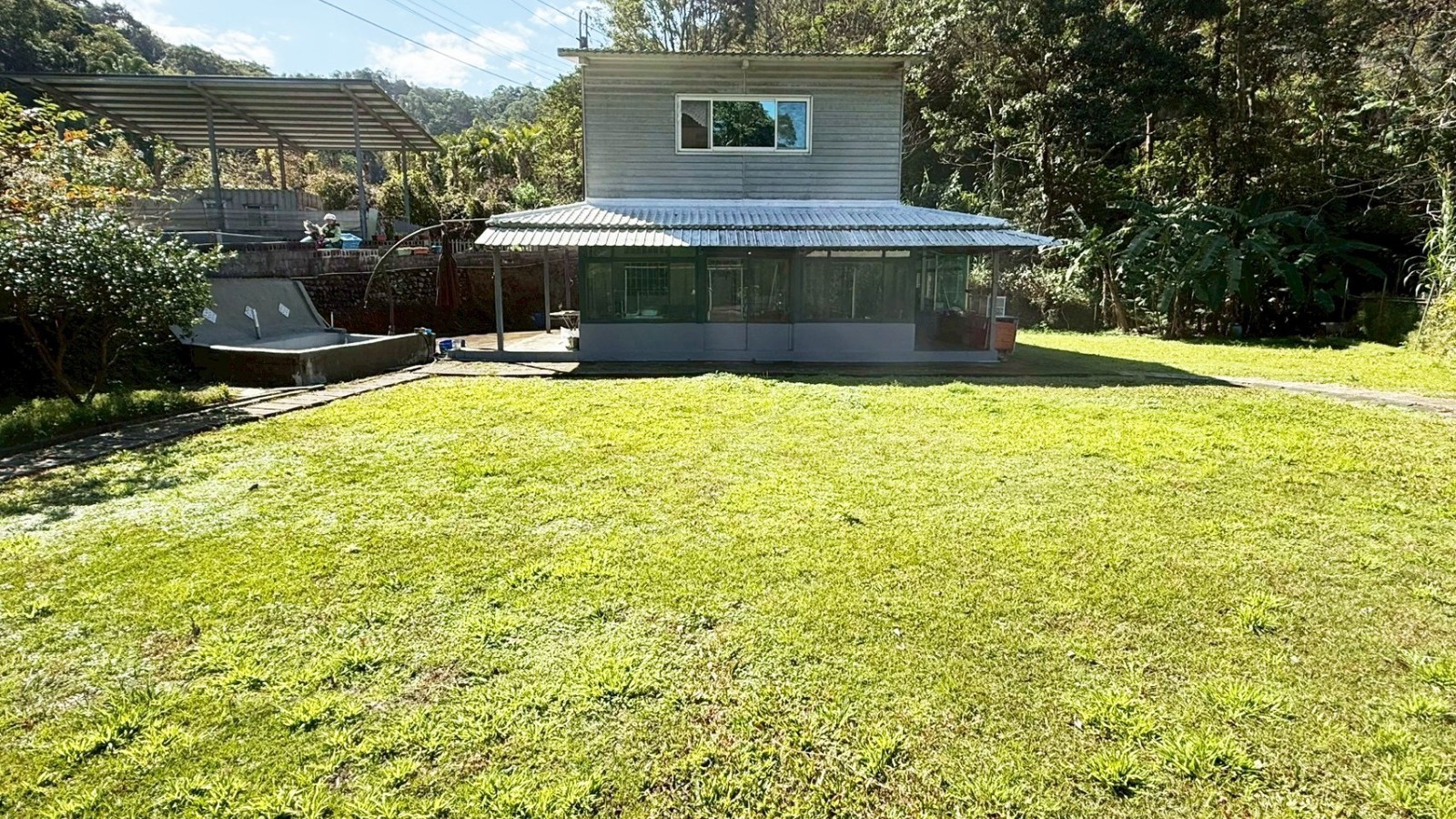 3.基礎設施完善,農地上現況有一間2層樓鋼構休閒屋(無保存登記)及一個貨櫃屋,休閒屋屋齡約13年,室內含露臺約50坪,格局為4房/1閣樓/2廳/1廚房/2衛浴,有電、使用山泉井水(目前自來水申請中)、桶裝瓦斯,有垃圾車定期清運(星期一早上10點)及郵務送達。