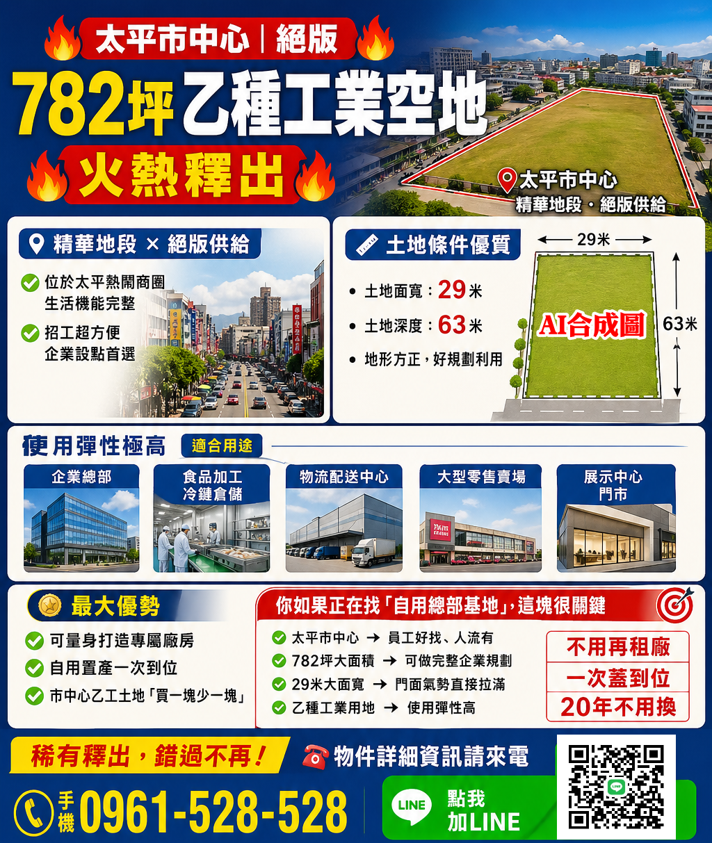 🔥太平市中心|絕版|782坪|乙種工業空地🔥火熱釋出🔥