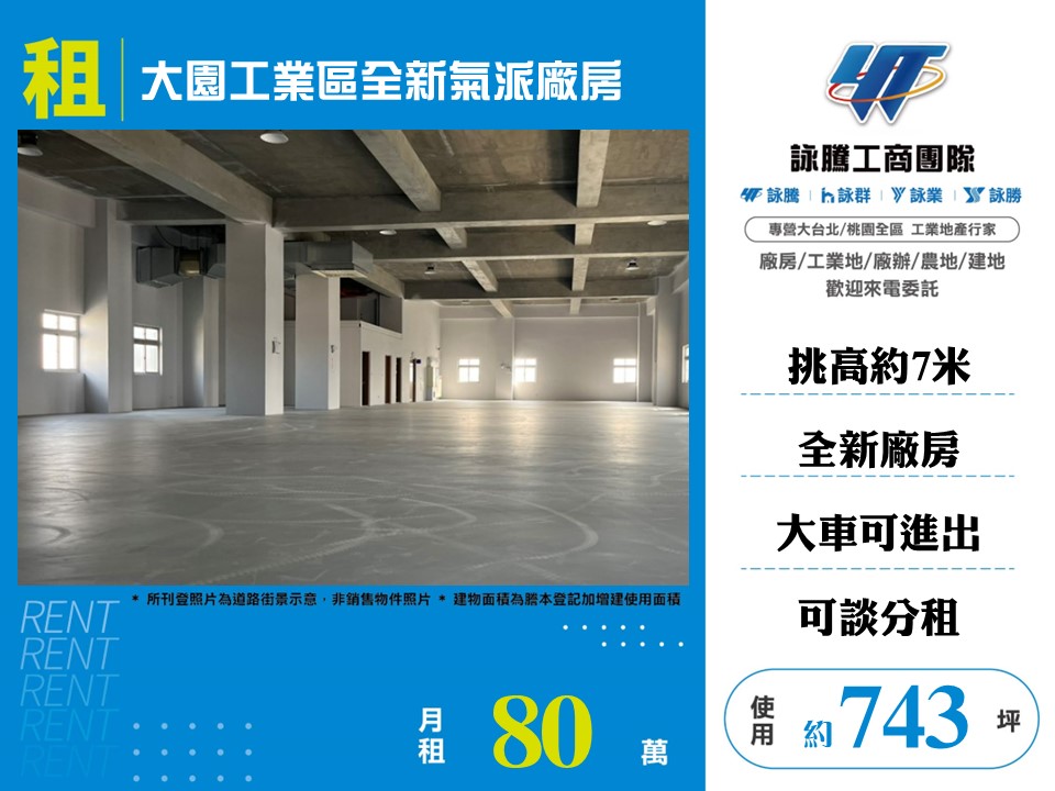 大園工業區全新氣派廠房(可分租)