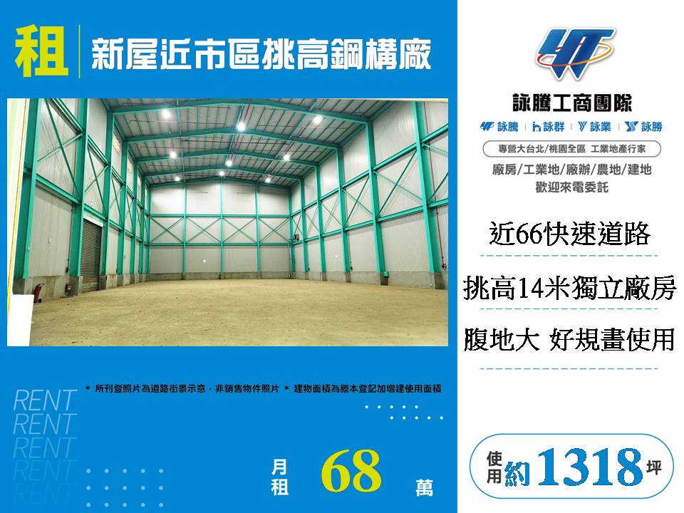 新屋/台31線/挑高7米/倉庫廠房• 桃園廠房出租/工業地/廠房/建地/徵收農地/買賣