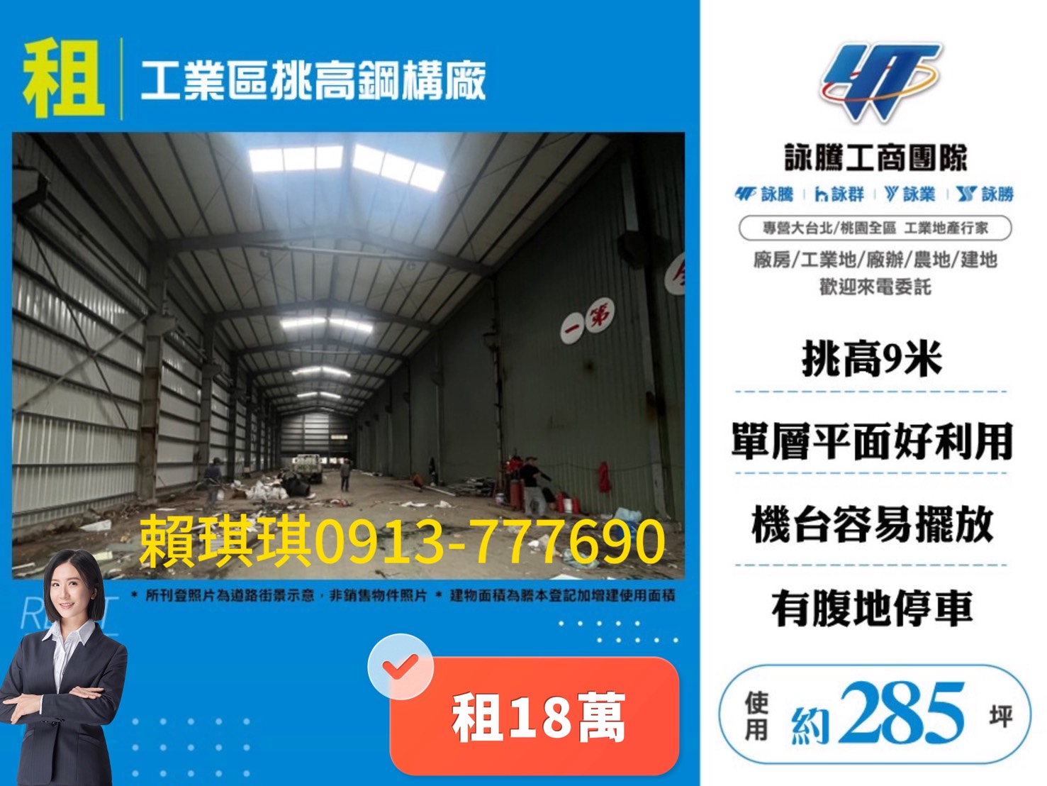 3.挑高方正,中間無柱,機台好擺放規劃