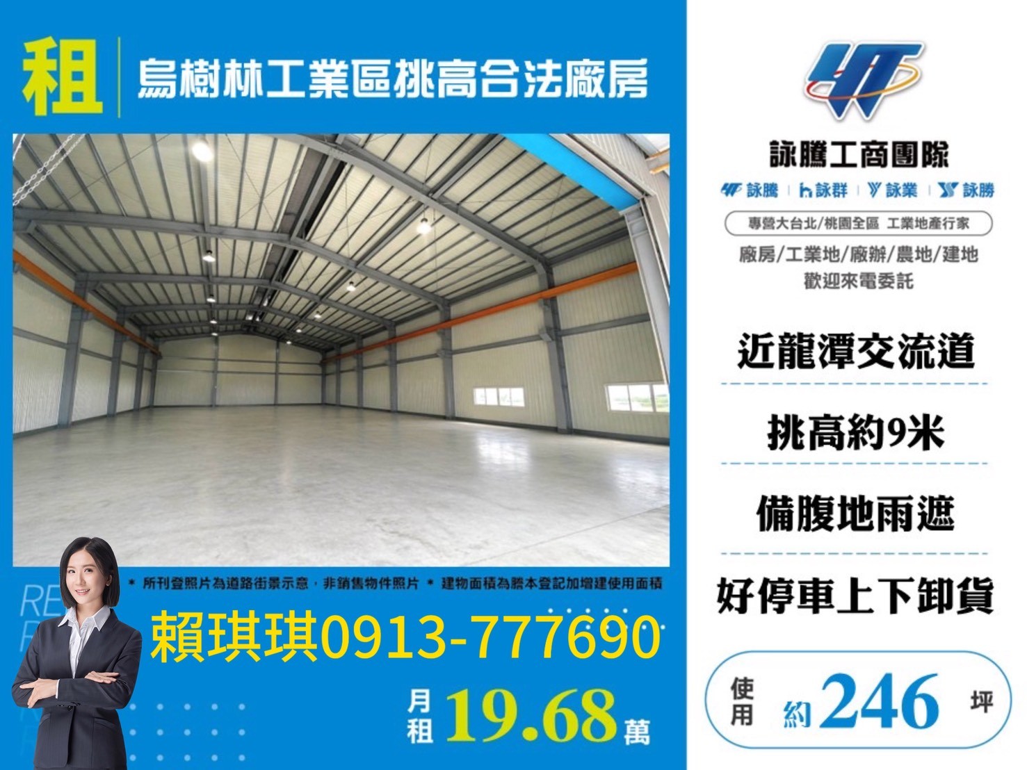 琪琪?推~近龍潭交流道烏樹林工業區挑高合法廠房