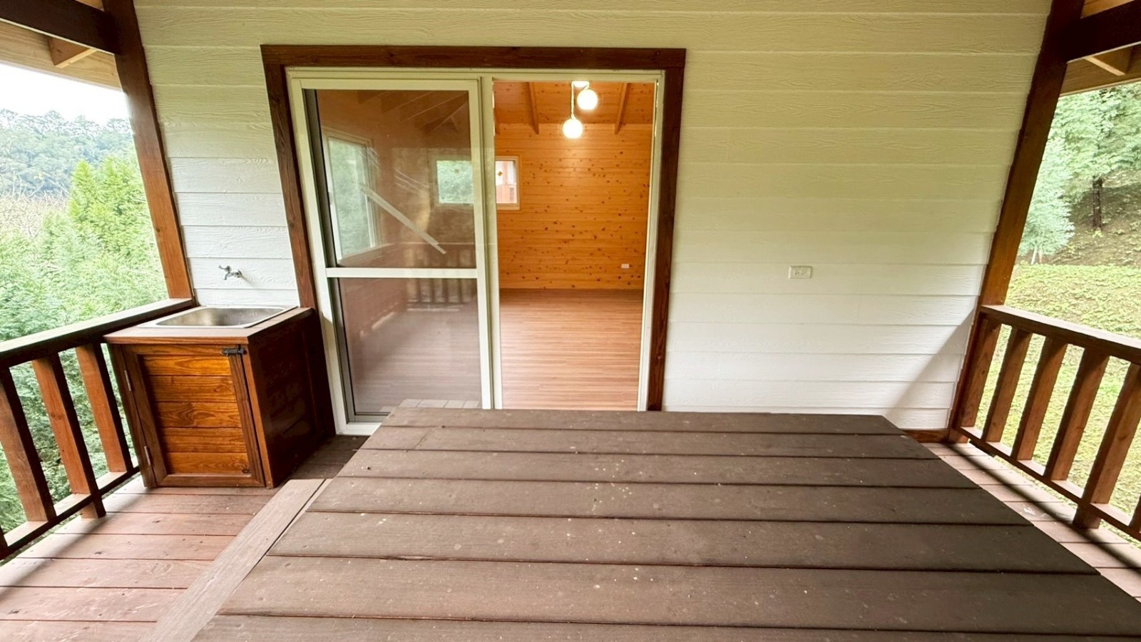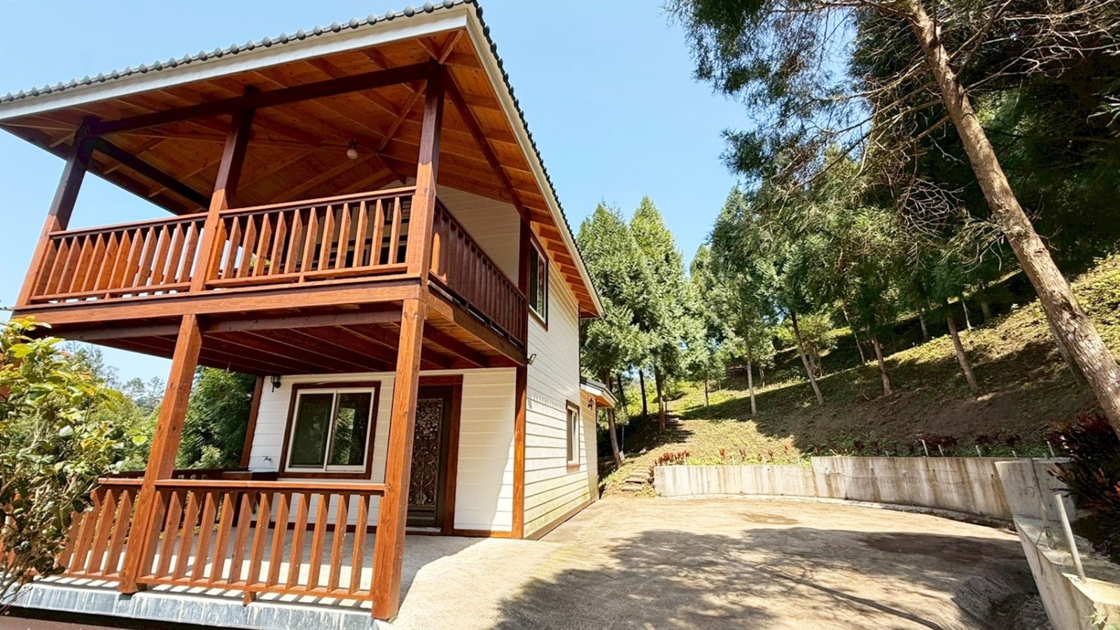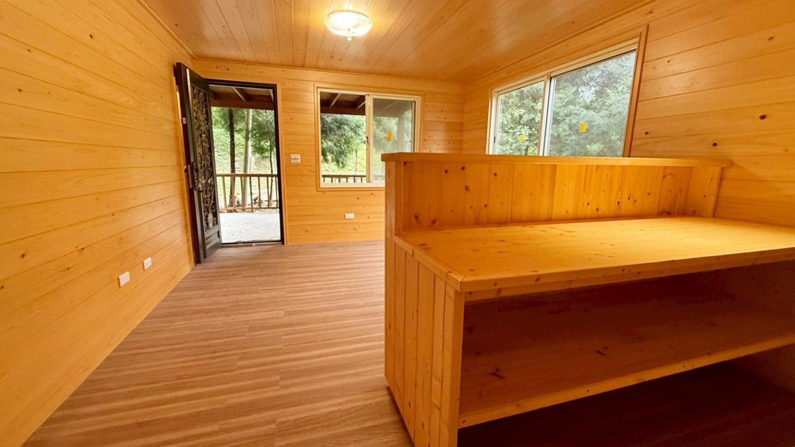 ★現況有一棟兩層樓全新鋼構木屋(無保存登記),室內含露臺及停車空間約32坪,格局規劃為2房/1廳/1吧檯/1衛浴/1大露臺/1停車空間,已有獨立電表,使用簡易自來水、社區共用井水。
