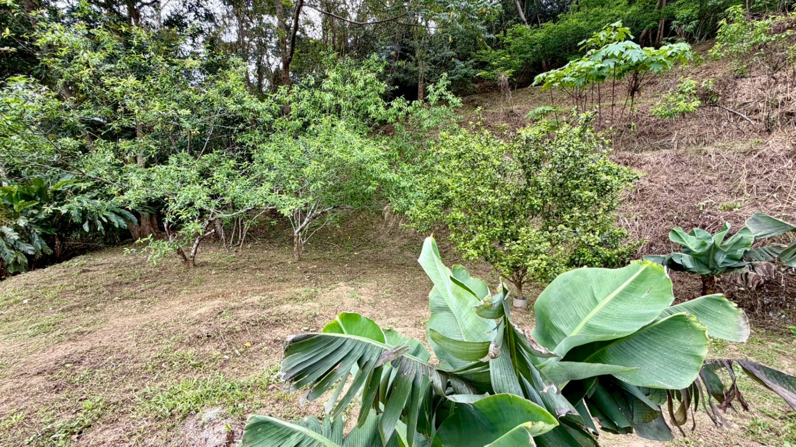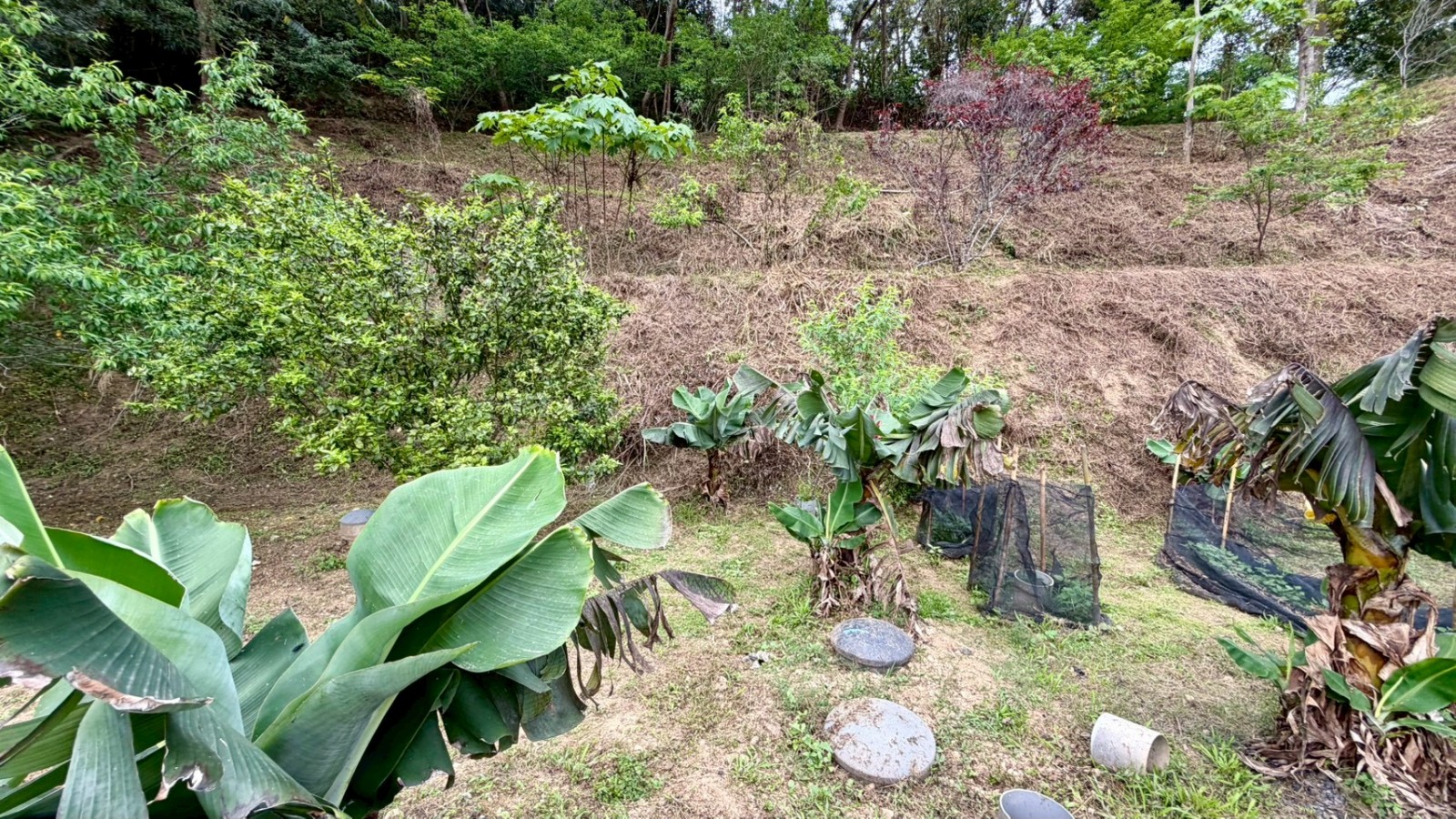 ★土地現況種植有:桂花、茄冬樹、油桐樹、樟樹、櫻花樹、橘子樹、柿子樹、桃樹、香蕉、鳳梨、木瓜...