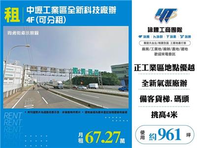 中壢工業區全新科技廠辦4F(可分租)